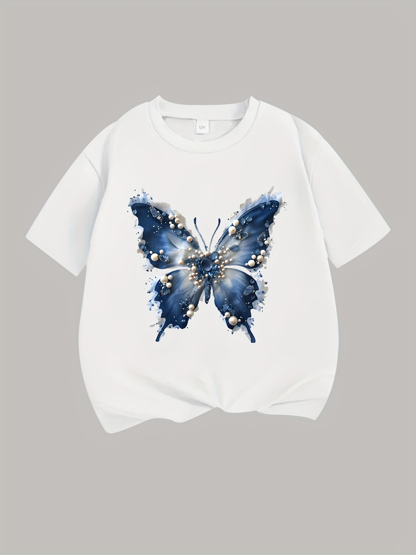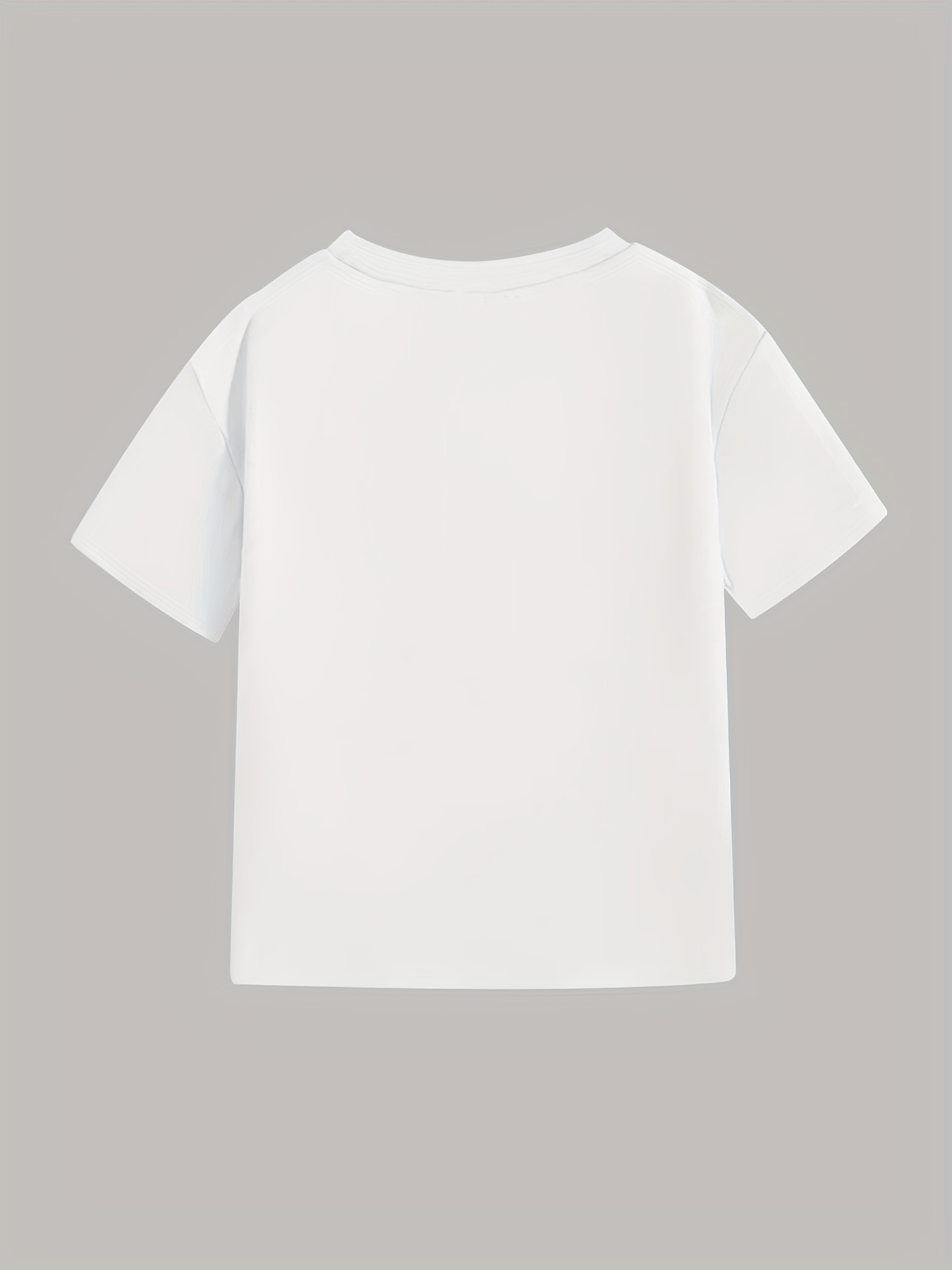 1pc Girls’ Short Sleeve T-Shirt with Bow Print, Trendy Casual Comfortable Top for Spring/Summer/Autumn Season, Medium/Large Size