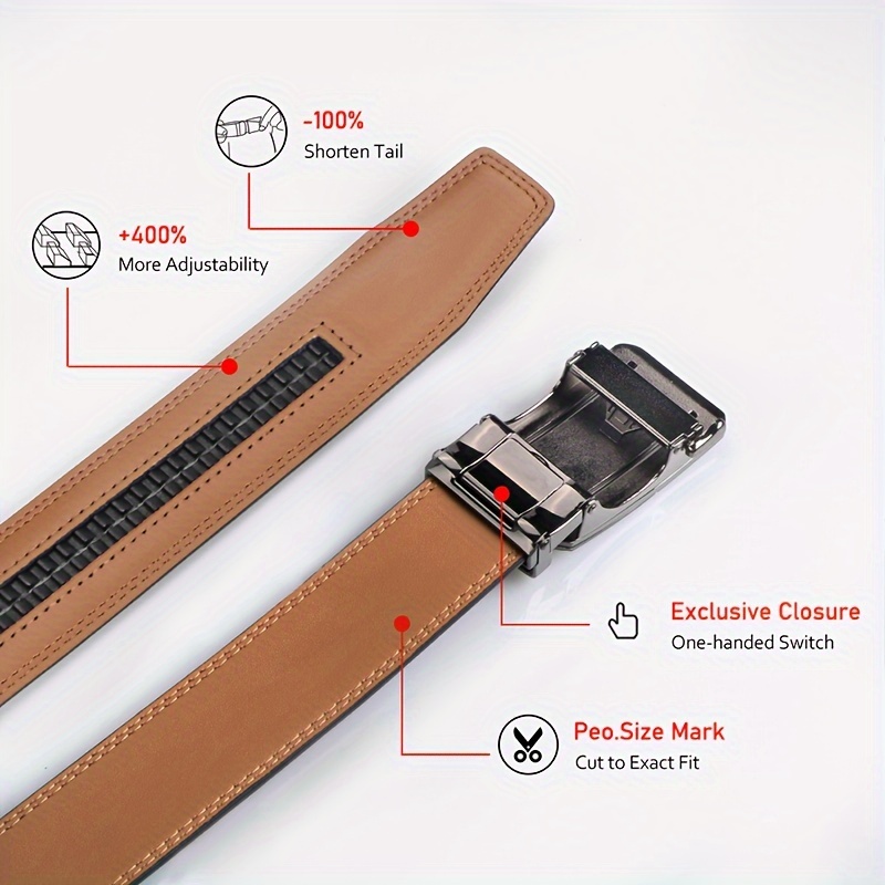 2026 Hot Selling Men’s Genuine Leather Dual-Layer Ratchet Belt – Automatic Buckle, Adjustable Belt, Suitable for Pants, Jeans, and Business | Durable Belt, Ideal for Office, Travel, Weddings, and Daily Wear | Perfect Gift for Men