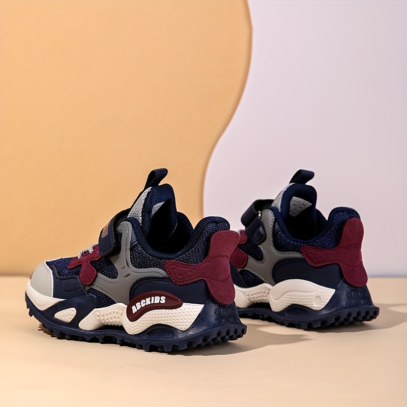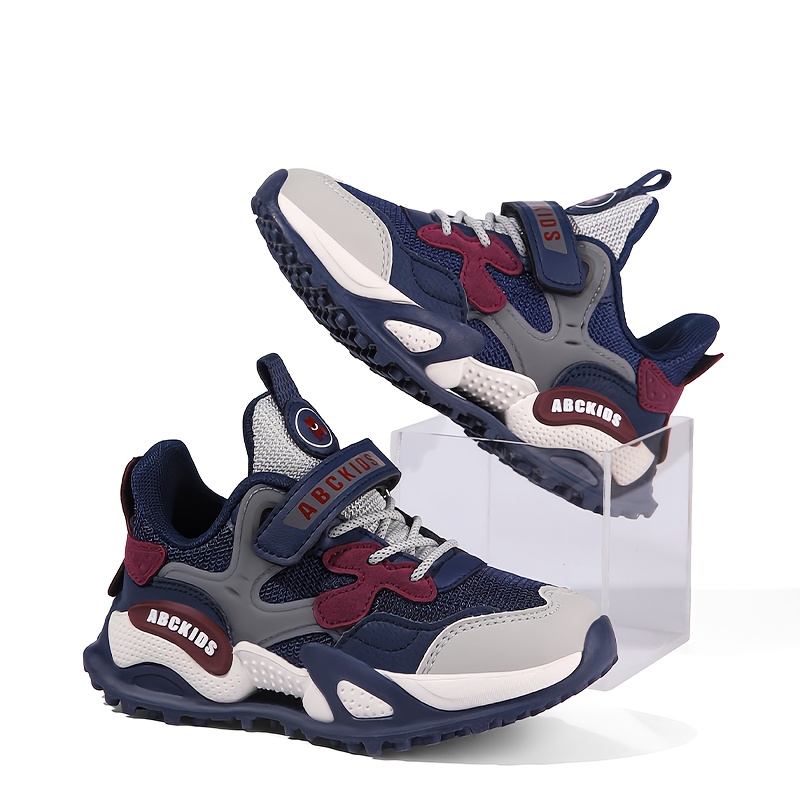 Boys’ Breathable Mesh Sneakers with Non-Slip EVA Sole, Closure & Cushioned Insole – Lightweight Low-Top Running Shoes for Outdoor Play, School, Sports – Navy Blue & Red Accents, School Sneakers, Sporty Design, Durable Construction, Schoolage Kids