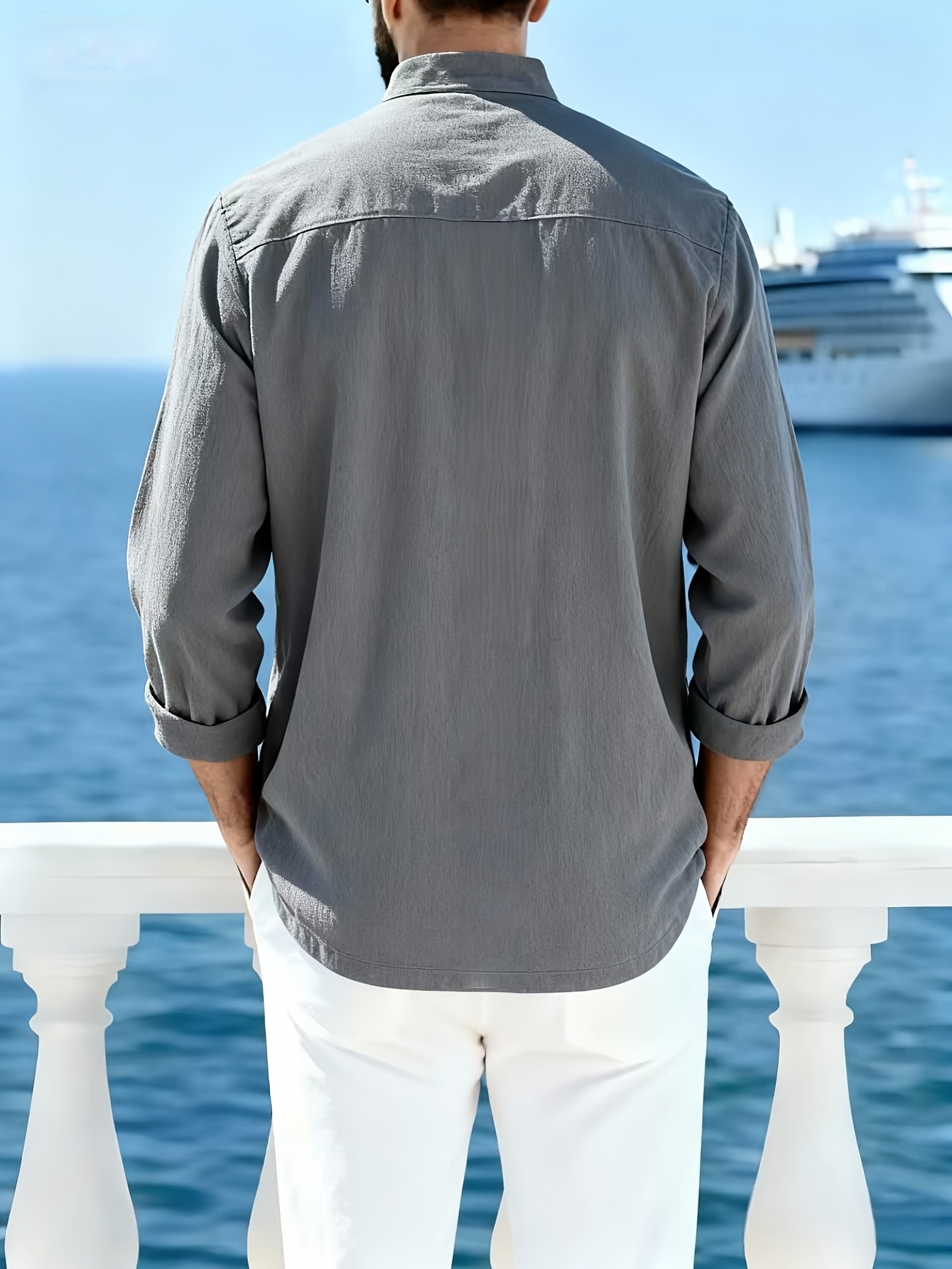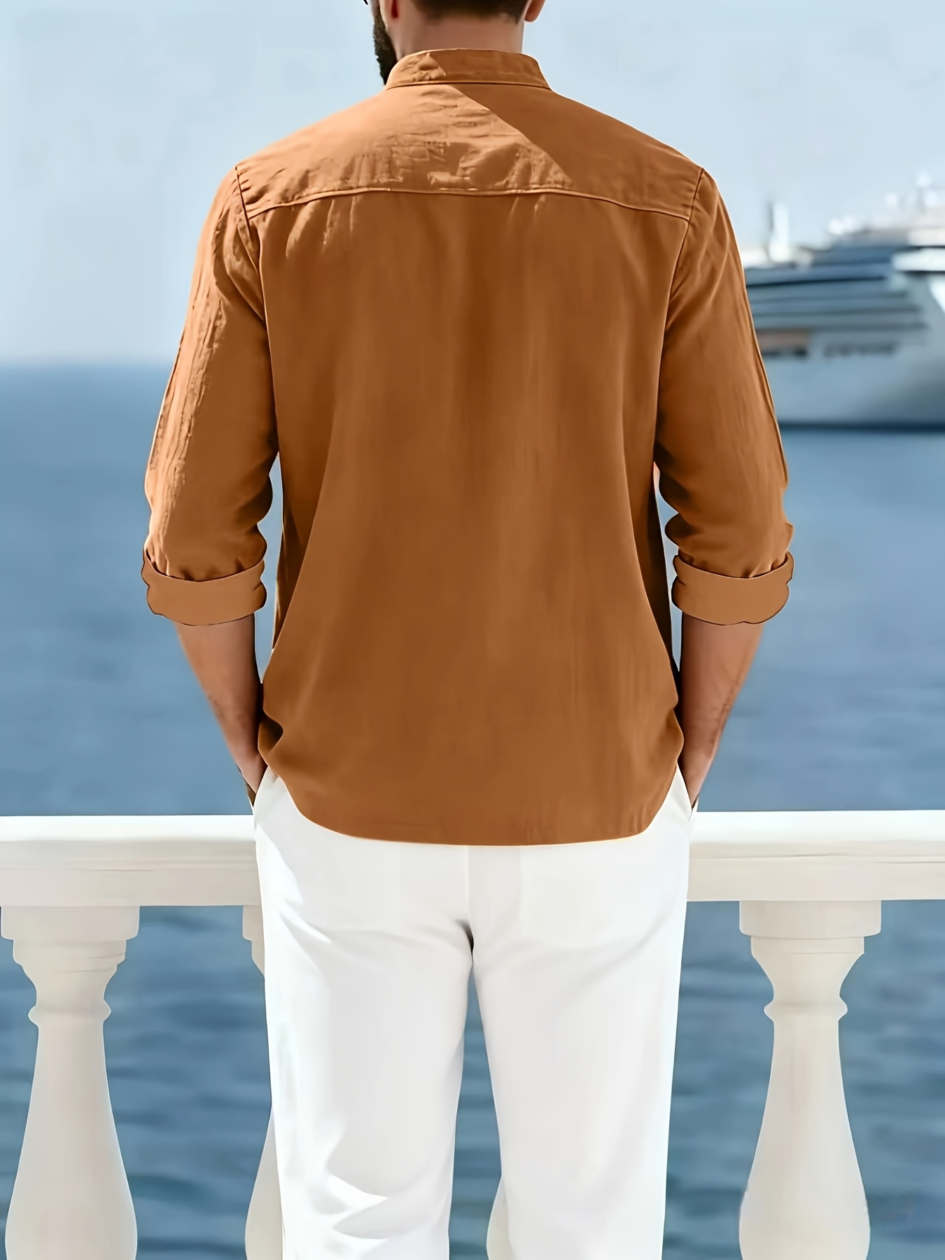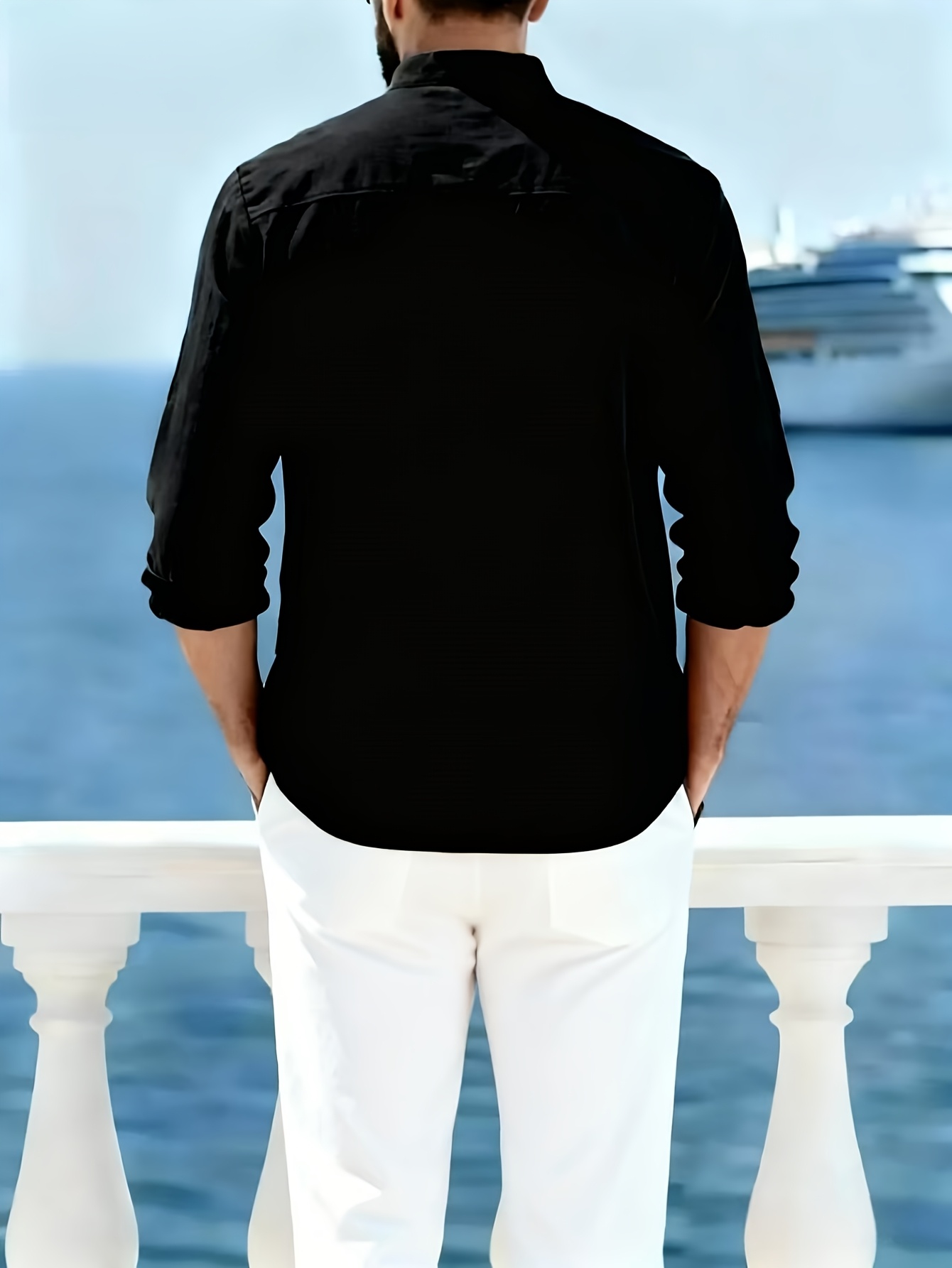 Men’s Four-Season Long-Sleeve Vacation Style Traditional Chinese Style Button- Stand Collar Shirt Casual Commuter Style, Chinese Size, Please Check The Size Guide Carefully
