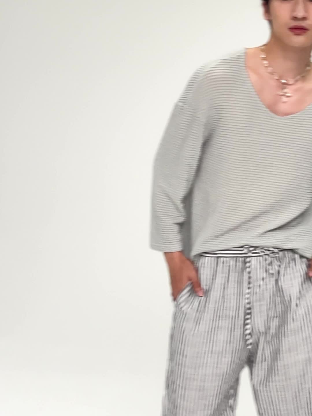 Men’s Long Sleeve V Neck Mesh Knitted T Shirts Casual Loose Pullover Tops Blouse, Chinese Size, Please Check The Size Guide Carefully