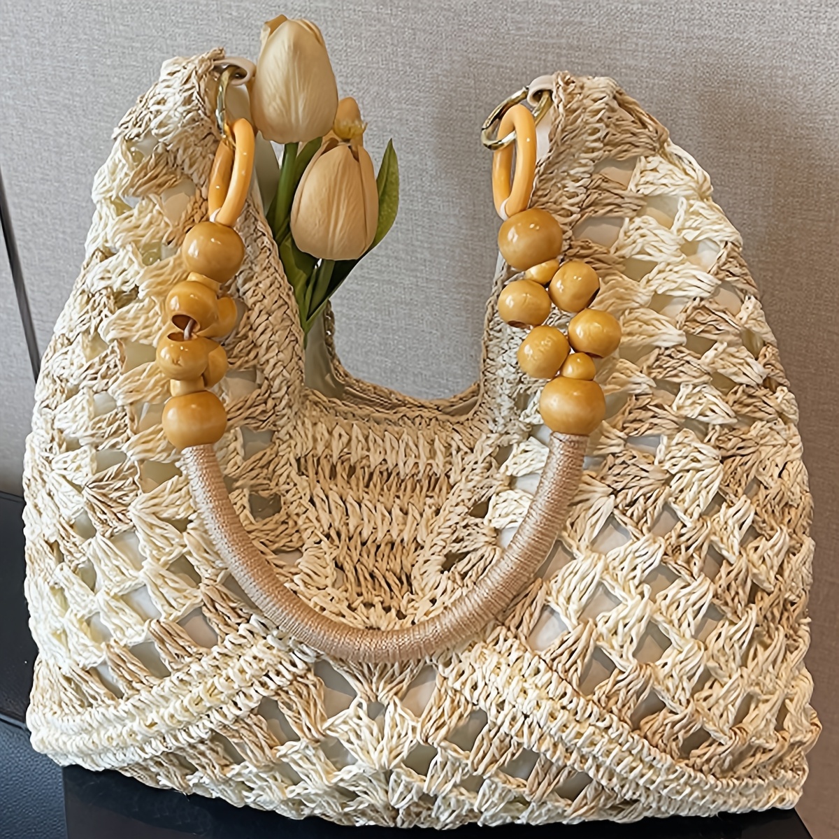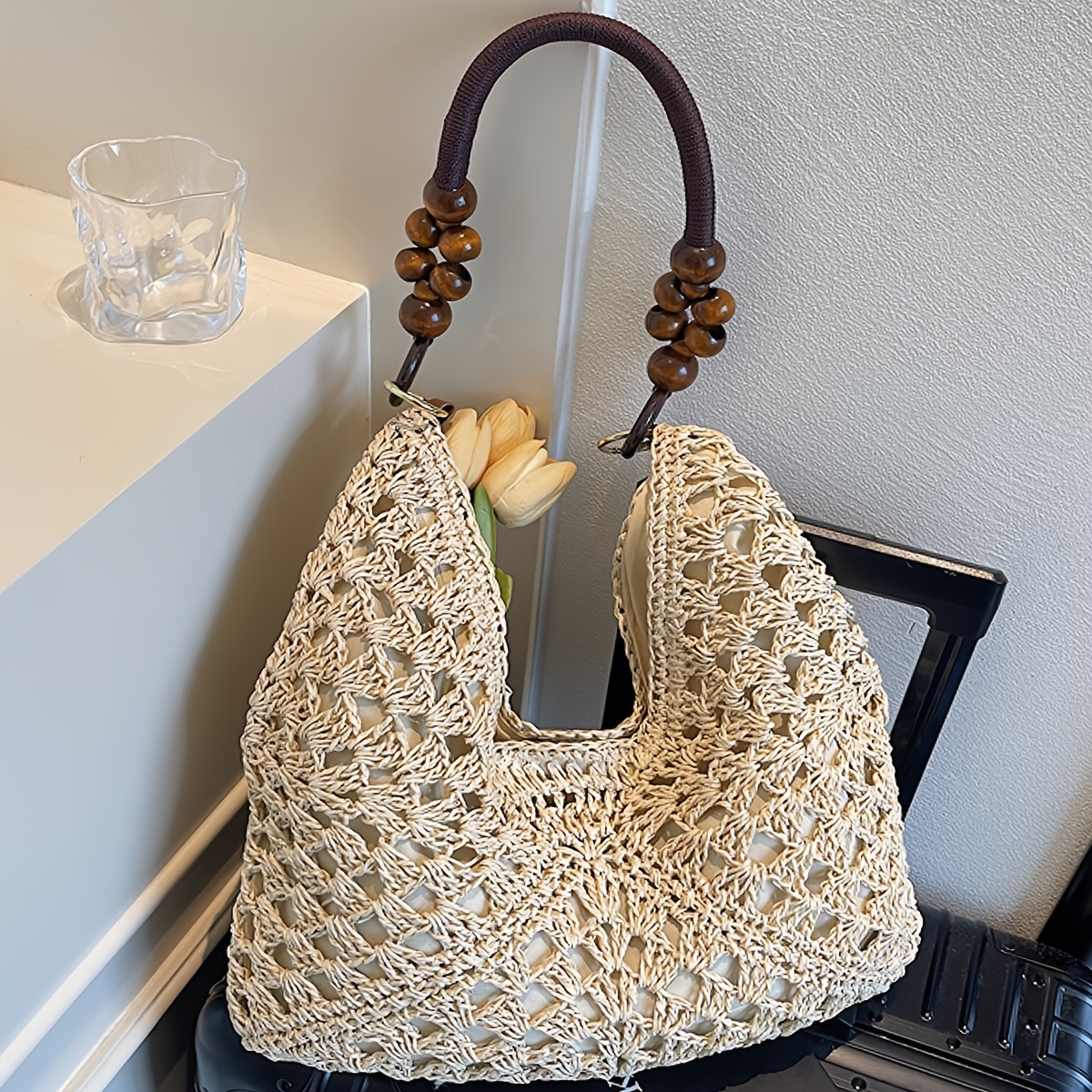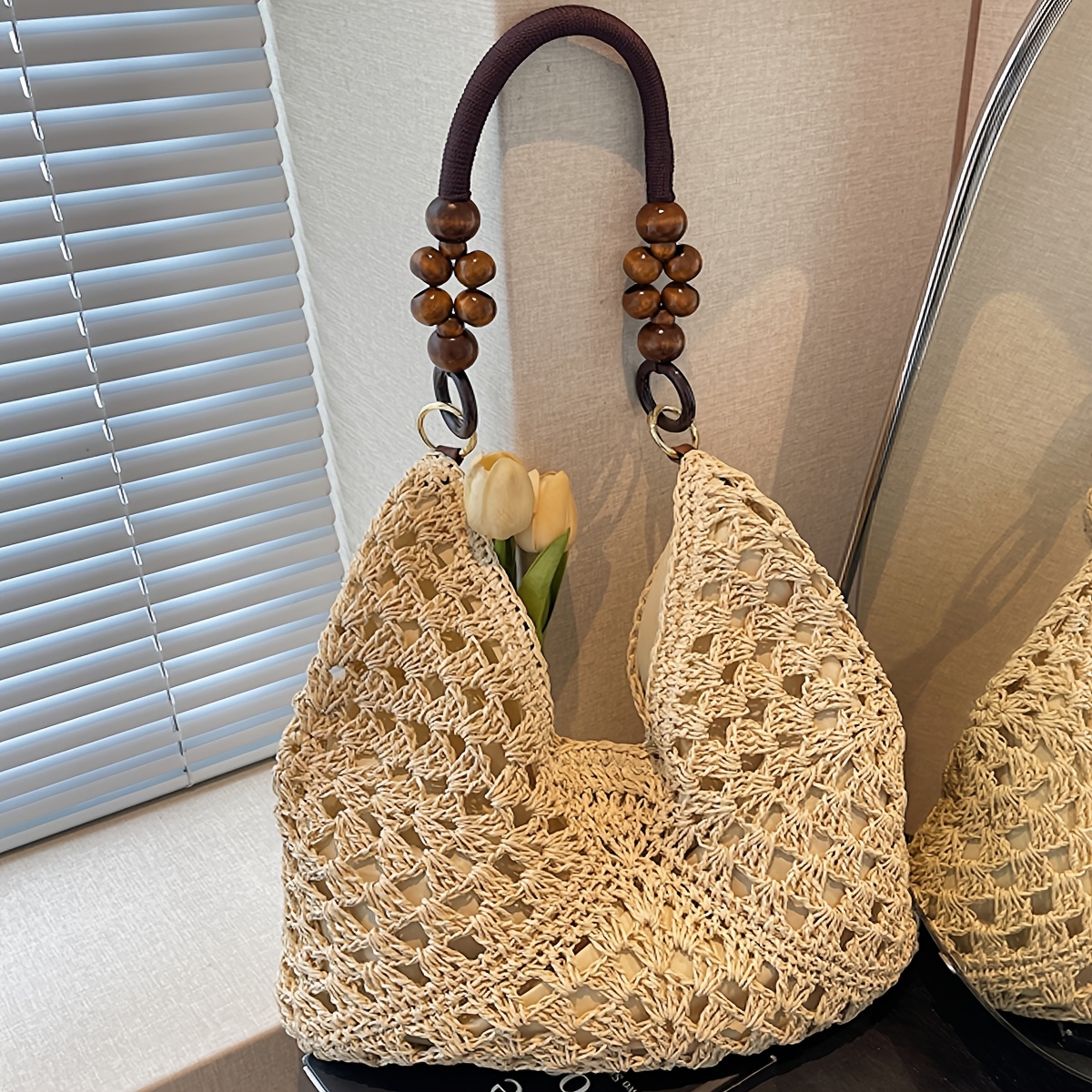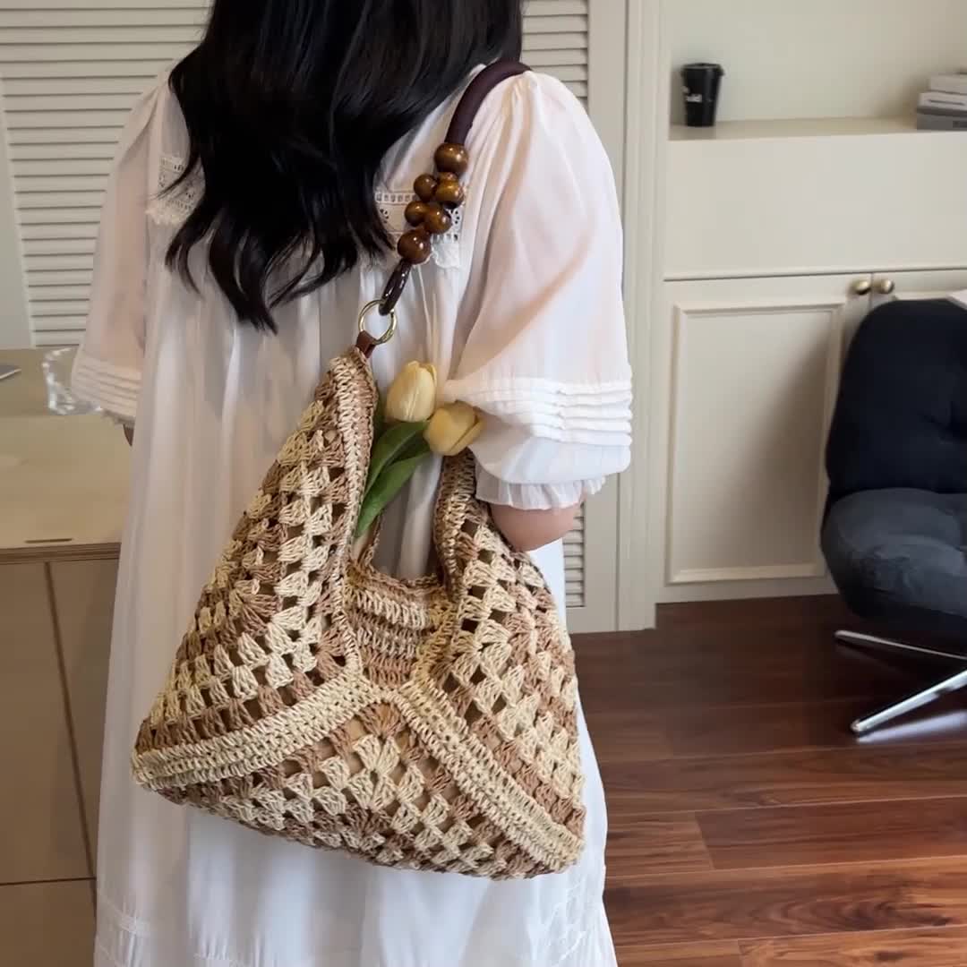 New Handmade Woven Bohemian Style Women’S Shoulder Bag, Featuring a Beaded Chain Decoration with Contrasting Colors And a Hollow Design, Suitable for Daily Commuting, Work, Vacation Trips, Beach Outings, Shopping