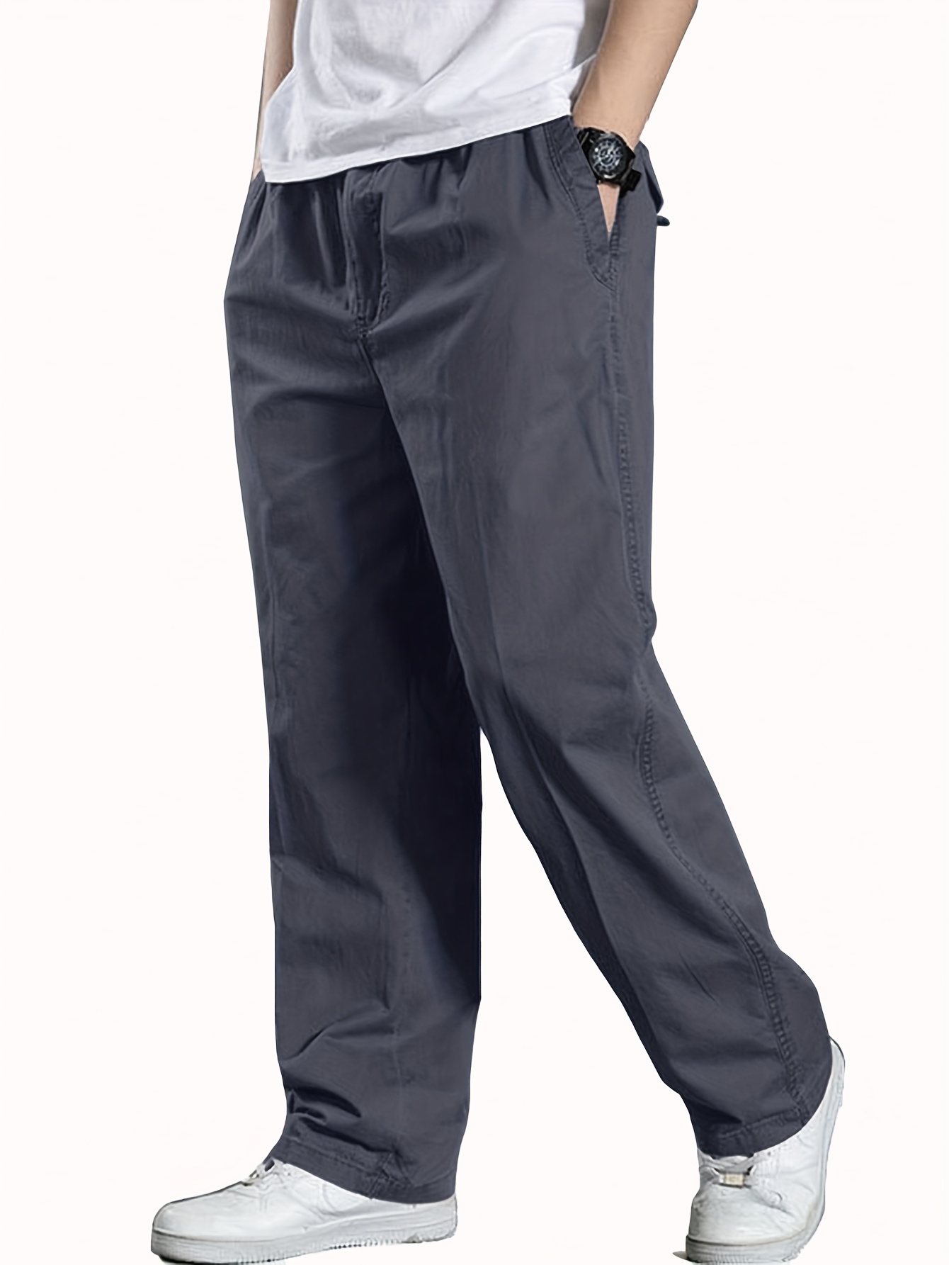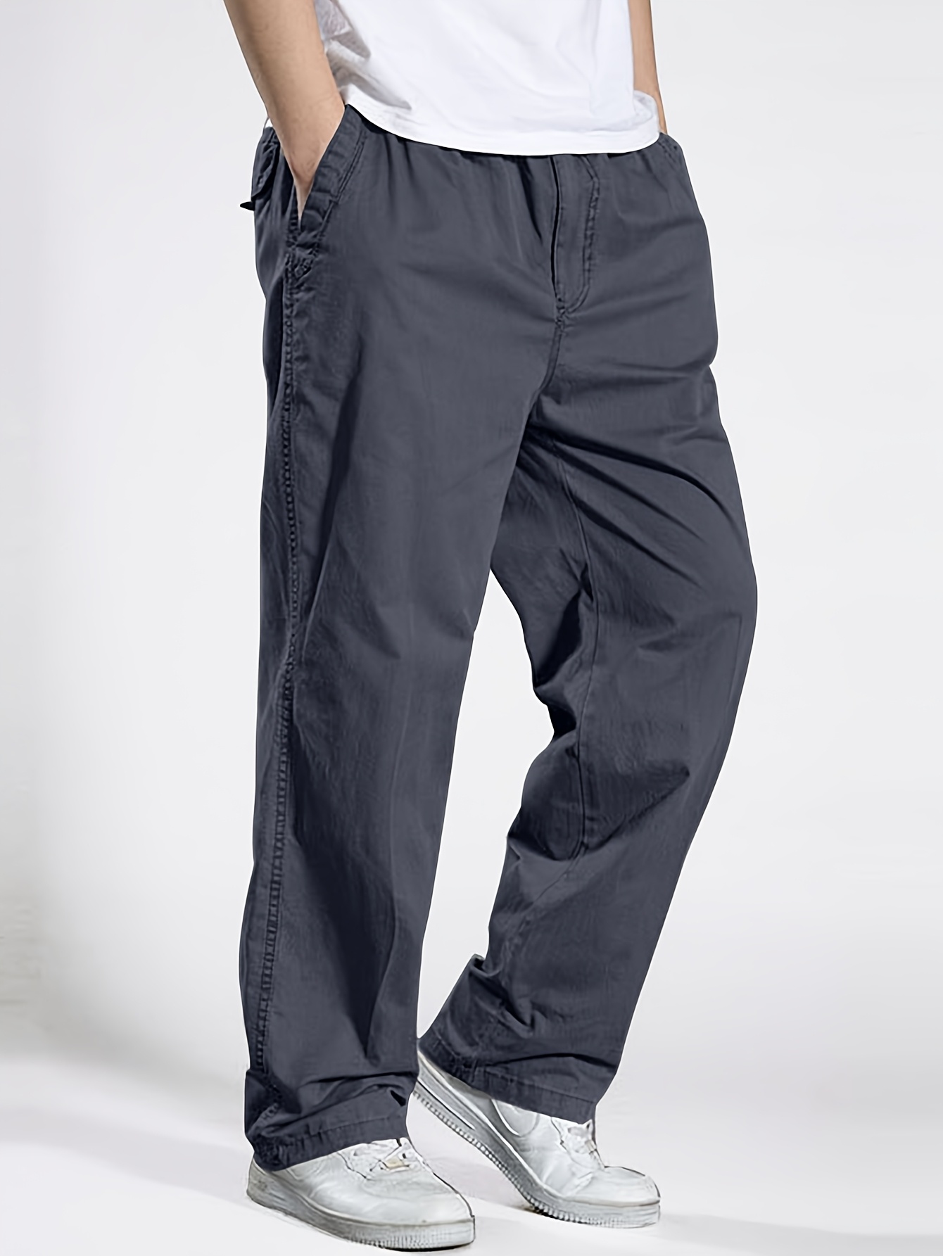 New Spring And Autumn Style, Men’S Casual Cargo Pants, Korean Version, Solid Color Loose And Versatile, 5-Color Choice, 100% Pure Fabric, Easy And Classic Style, Suitable for Middle-Aged Outdoors for Daily Casual Sports (Elastic Waist)