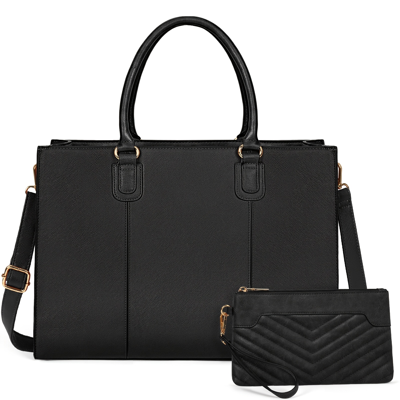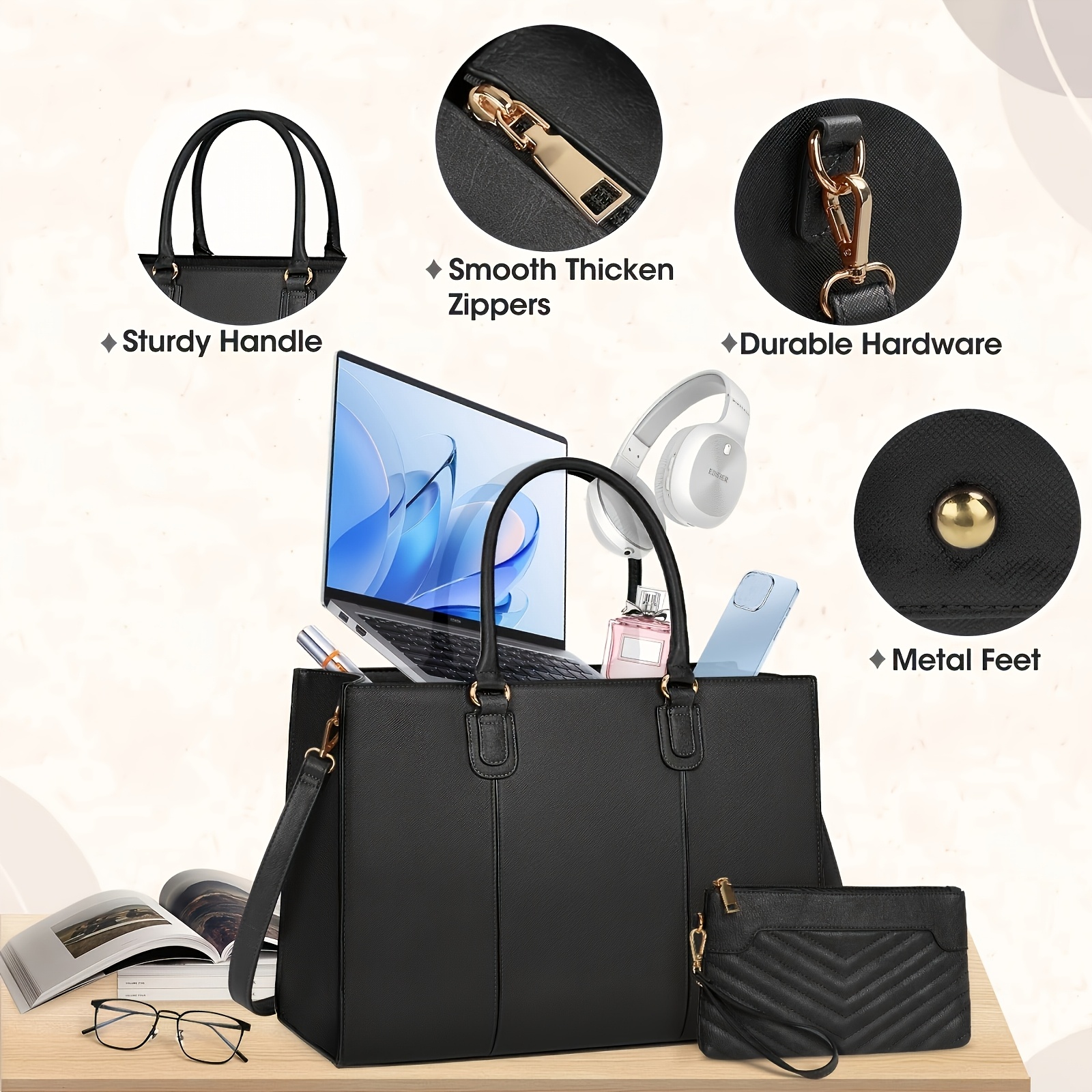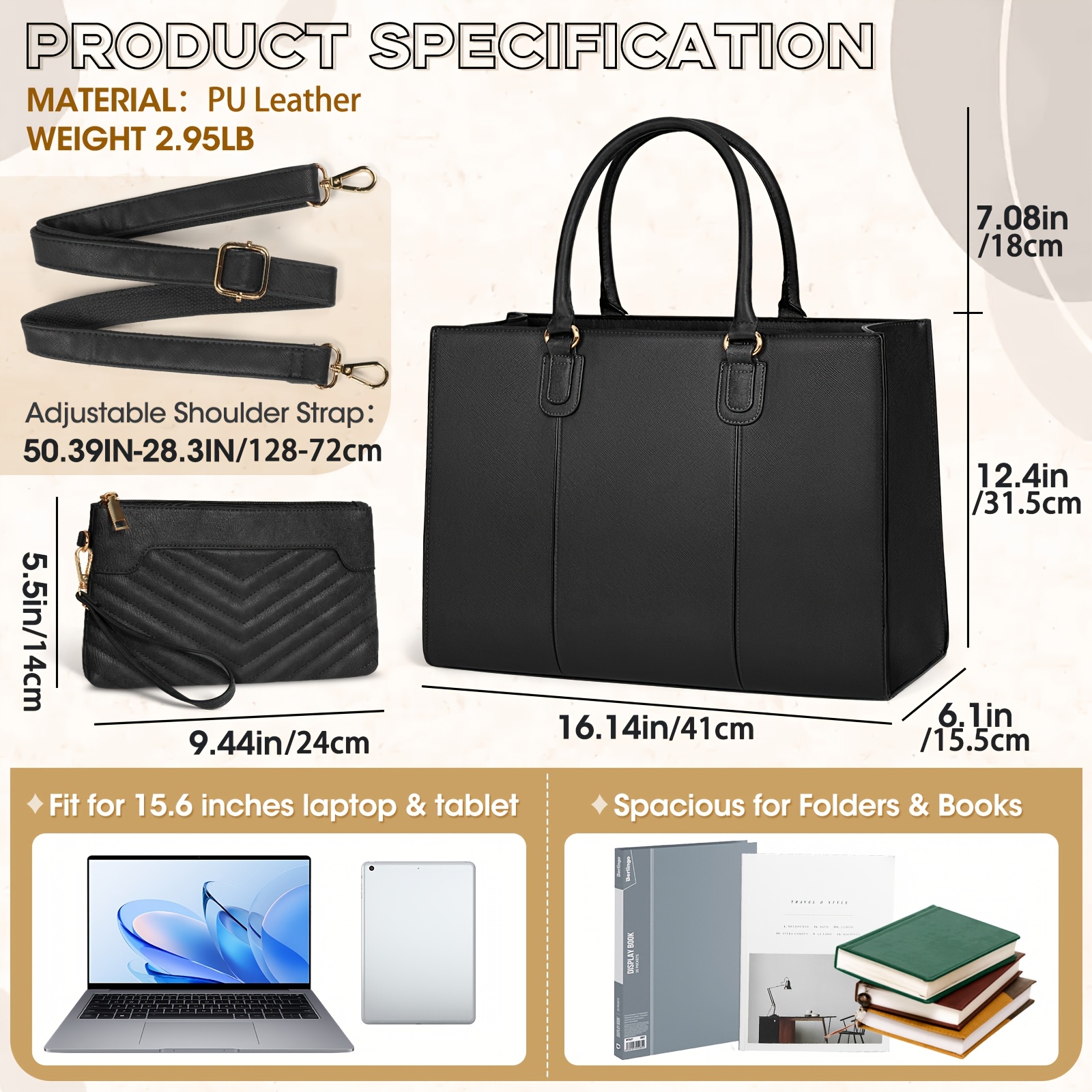 NUBILY Laptop Tote Bags for Women 39.62 cm Womens Work Bag Large Vintage PU Leather Laptop Purse for Business Office Travel Teacher Handbag Shoulder Bag, Black