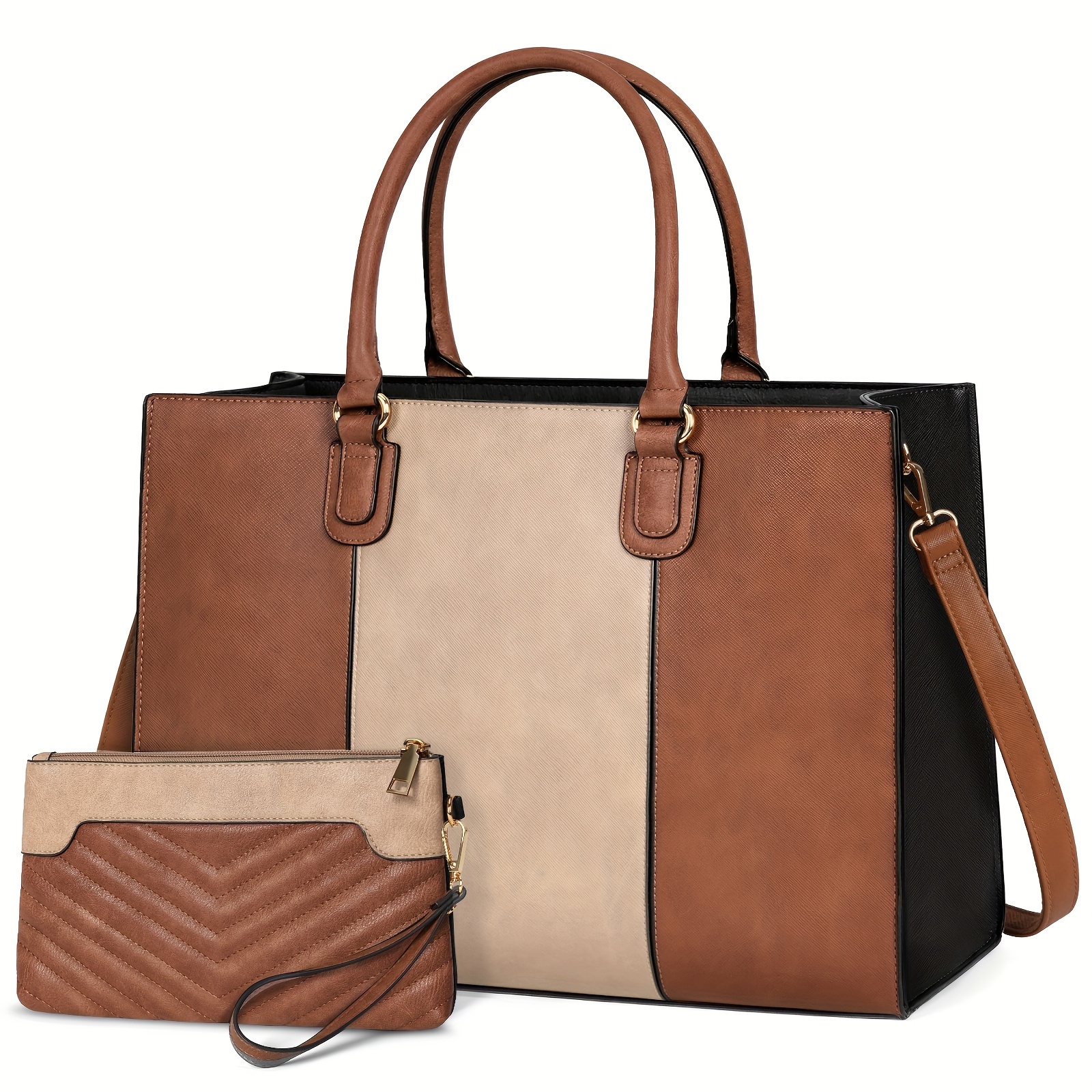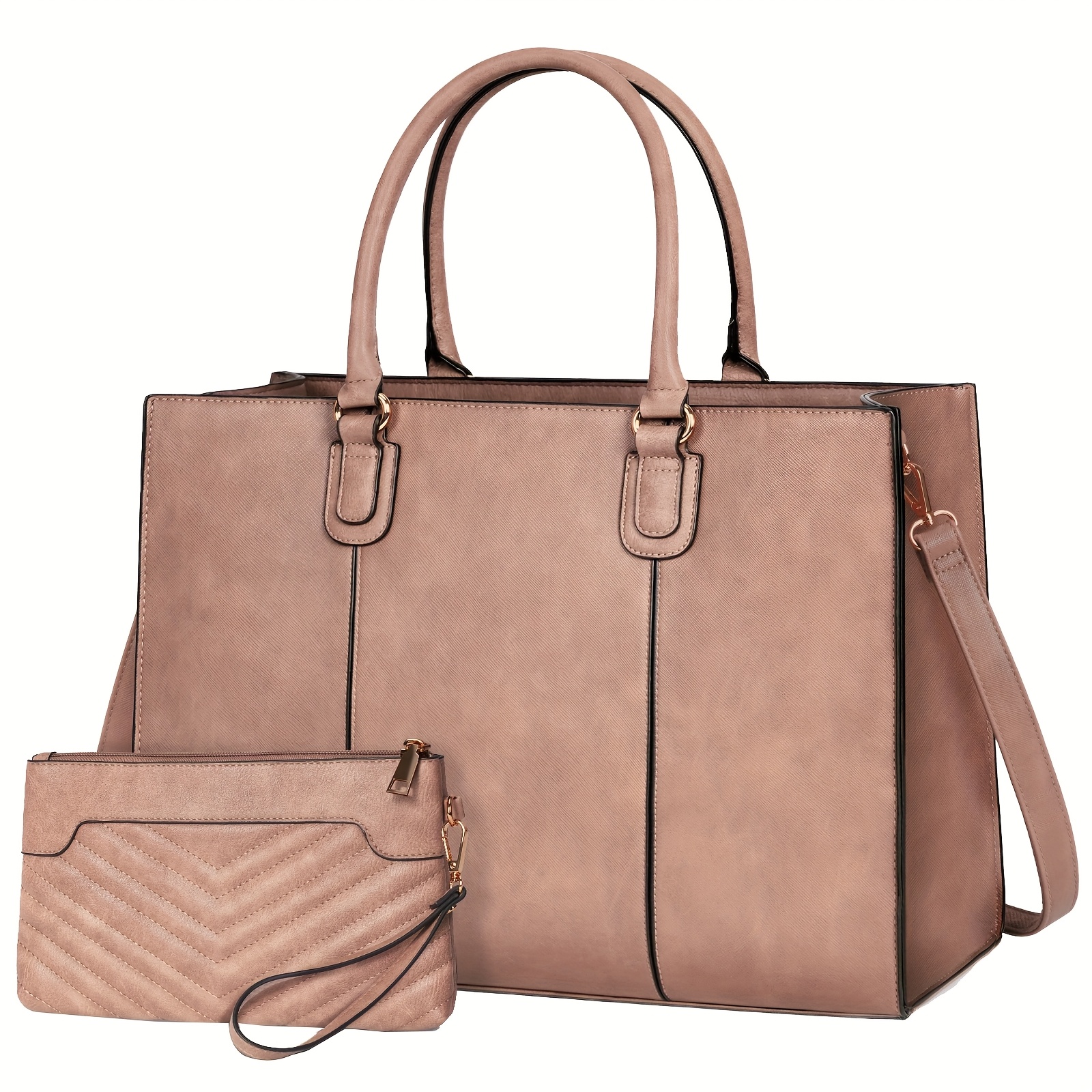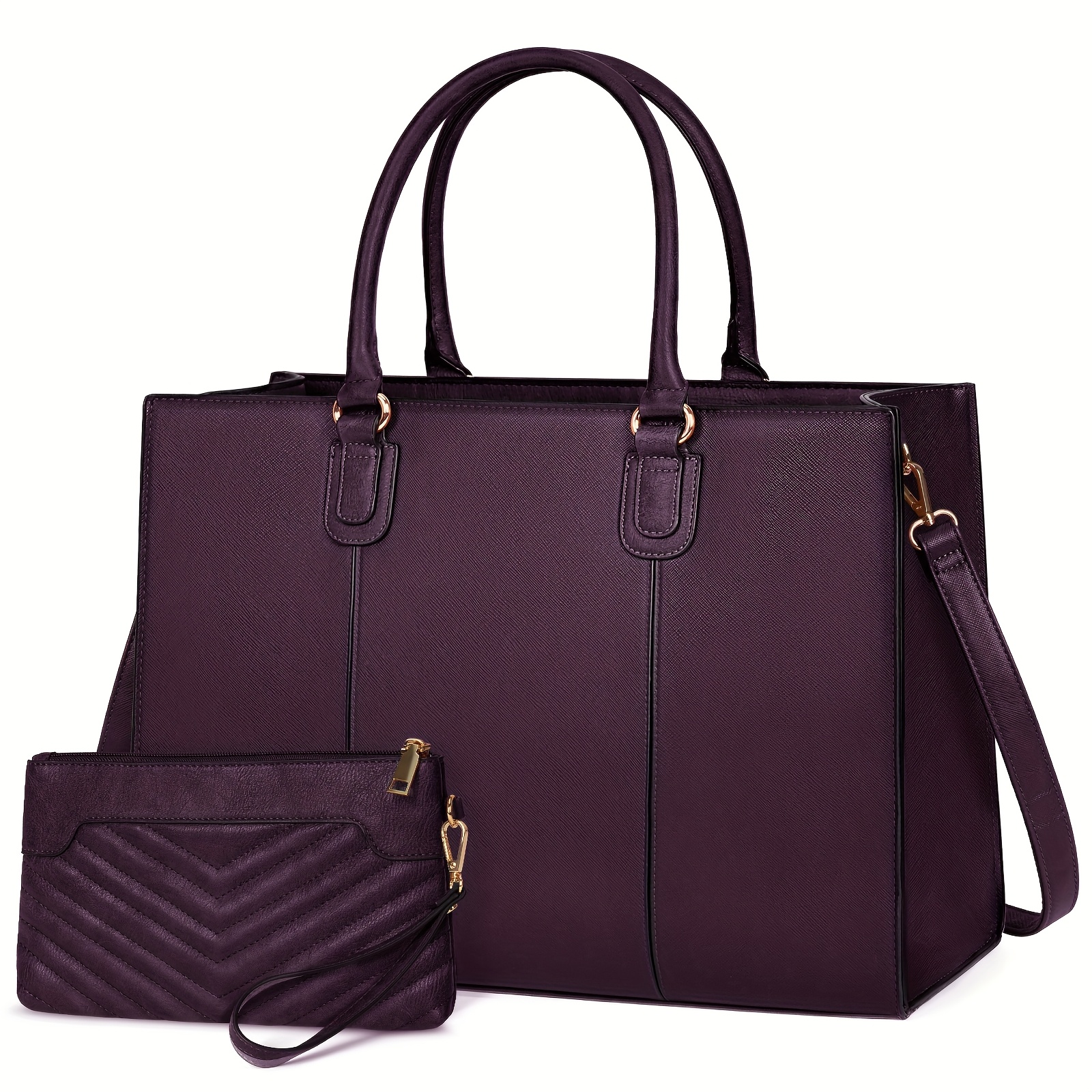NUBILY Laptop Tote Bags for Women 39.62 cm Womens Work Bag Large Vintage PU Leather Laptop Purse for Business Office Travel Teacher Handbag Shoulder Bag, Black