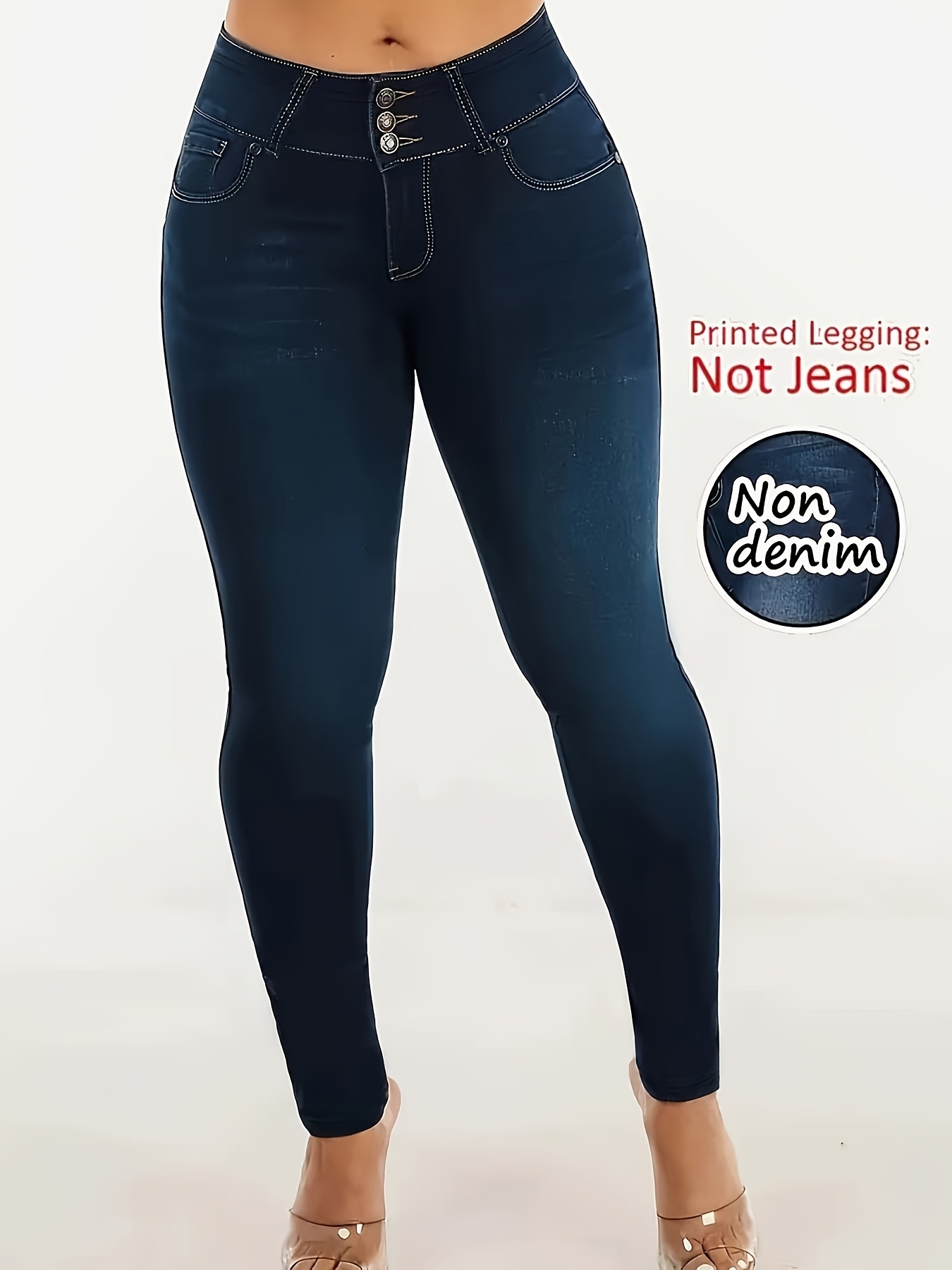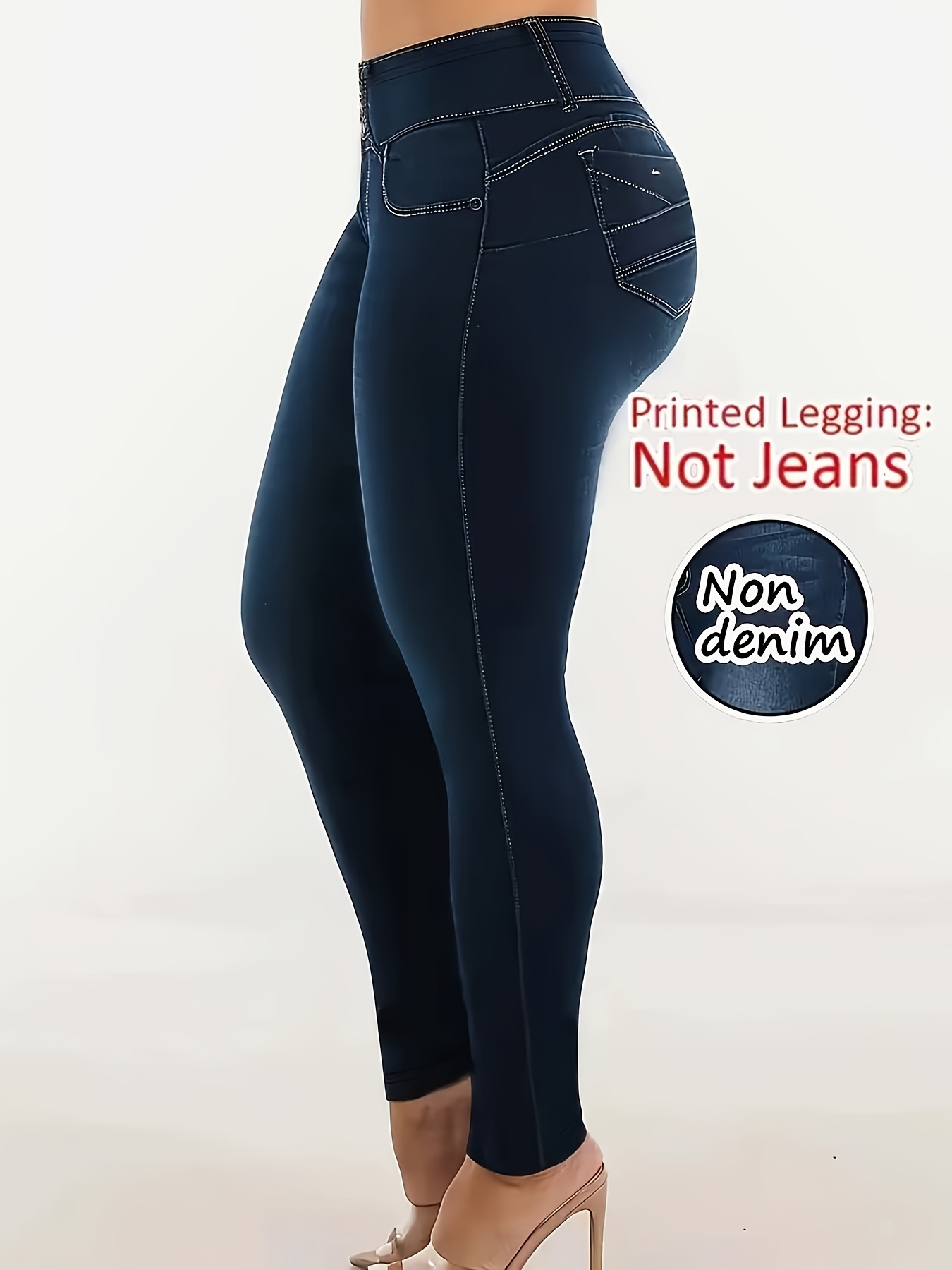 Printed Legging – Not Denim Fabric, Non-Denim/Non-Jeans, Imitation Denim Printed Leggings, Tight-Fitting Pants, Outdoor Sports Yoga Pants